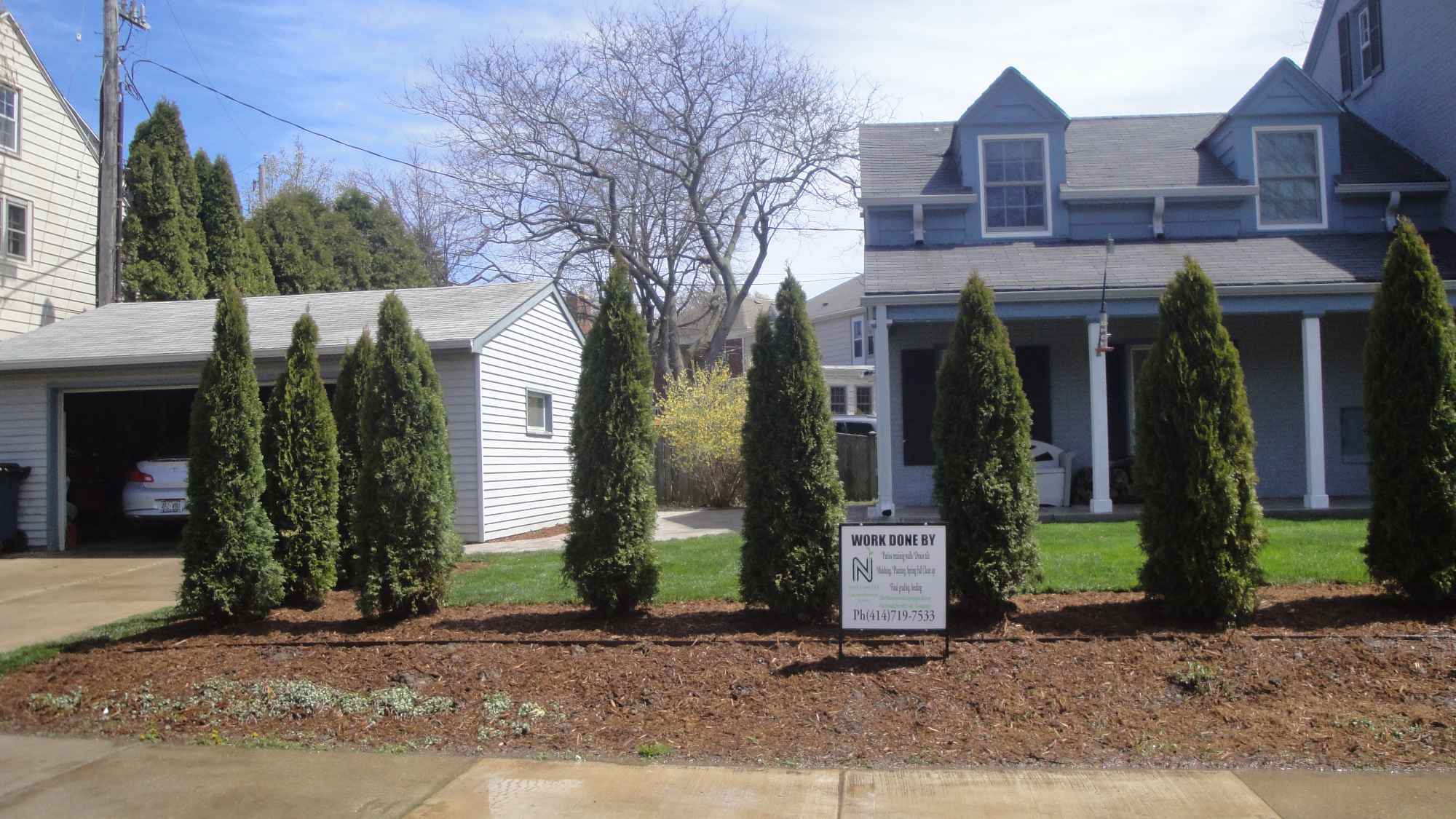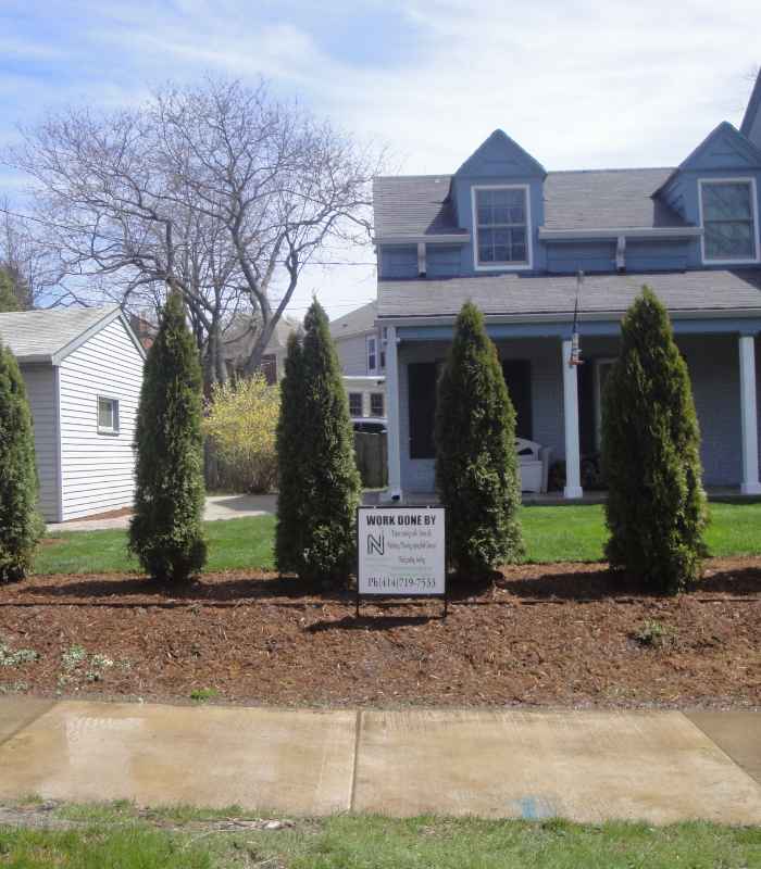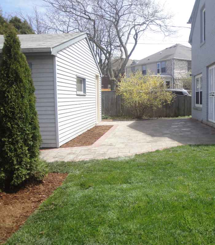This project in Shorewood, WI, involved transforming the backyard by removing overgrown trees, installing a paver patio, and adding vibrant new evergreen plantings. The Arborvitae trees offer natural privacy, creating a peaceful retreat. With freshly laid sod and mulch for the planting beds, the yard is now both functional and visually appealing.